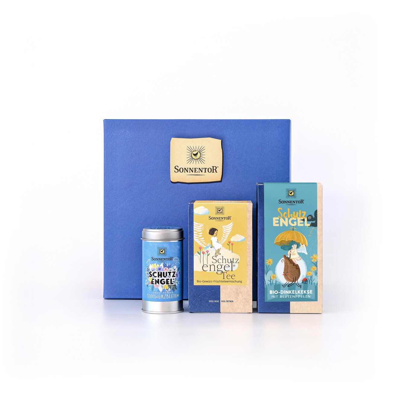 Inhalt: je 1 St: Schutzengel Kekse bio, Schutzengel Tee bio Aufgussbeutel Spenderkarton, Schutzengel Gewürzblüten bio Streudose. Zutaten, Allergene und Nährwerte der einzelnen Sorten findest du bei den einzelnen Produkten.